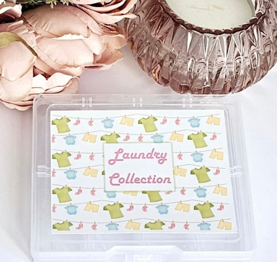 Introducing the Laundry Collection - a set of 8 wax melts in a plastic box, all with a fresh laundry scent. Delight your senses with the crisp, clean aroma while enjoying hours of long-lasting fragrance. Say goodbye to boring wax melts and hello to a laundry day you'll actually look forward to!
