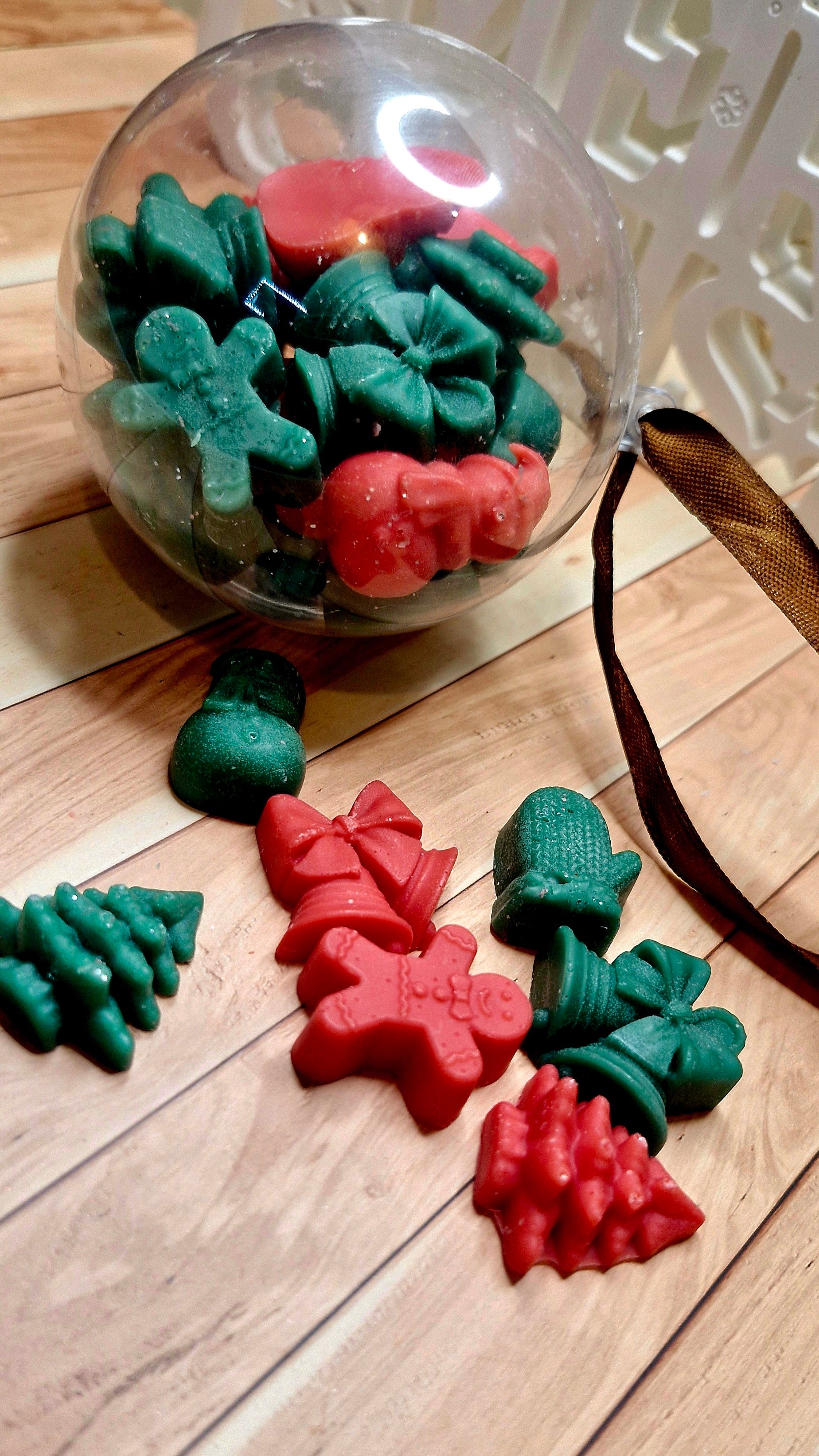 Fill your home with the magic of Christmas with our Christmas Bauble — a clear ornament filled with festive-shaped wax melts. From gingerbread men to Christmas trees, each melt is bursting with cozy seasonal fragrance. Perfect as a stocking filler, tree decoration, or a thoughtful gift to spread holiday cheer.