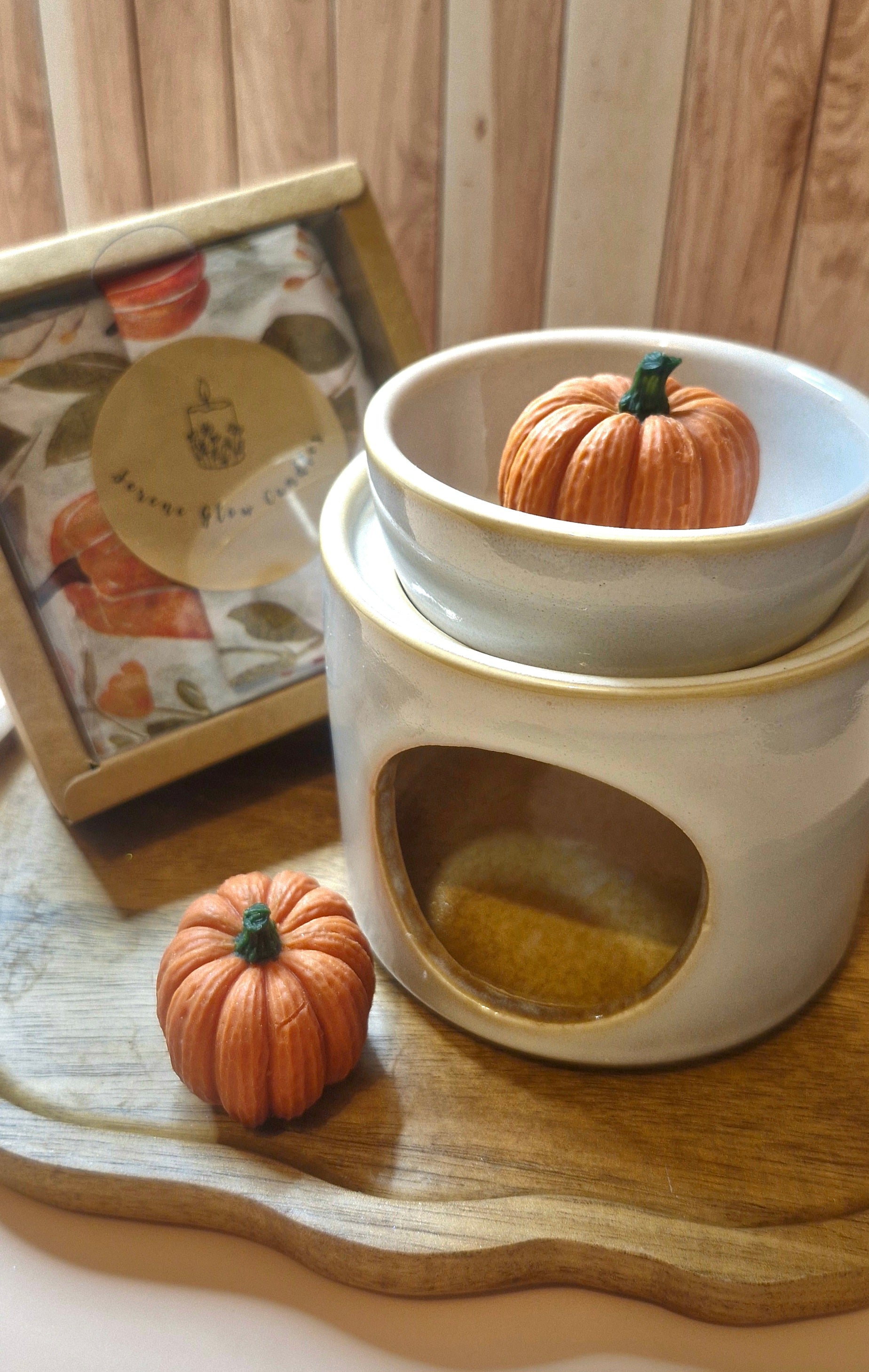 "Get into the festive fall spirit with our Pumpkin Wax Melts! These 4 pumpkin-shaped wax melts will fill your home with the delicious scent of caramel pumpkin swirl. Enjoy the cozy and warm atmosphere these melts provide. Perfect for creating a spooky ambiance or for a cozy night in. So go ahead, spice up your home décor today!"