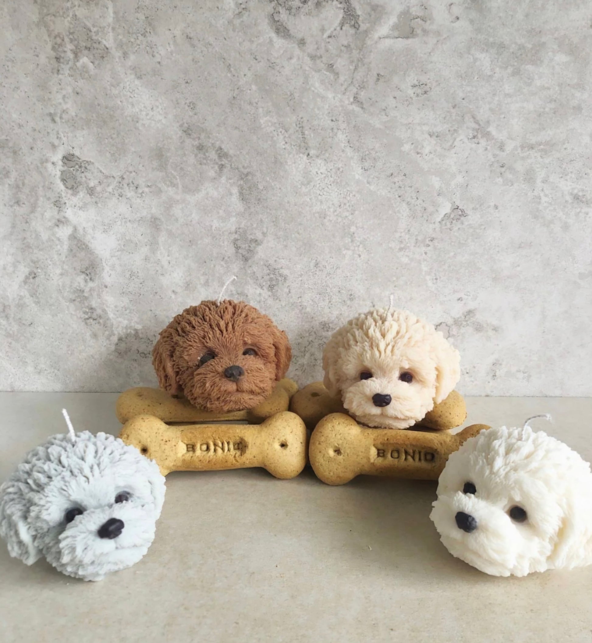 "Light up your space with this adorable puppy head candle! Made to resemble a playful pup, this candle adds a touch of fun and charm to any room. Light it up and watch as the candle melts into a cute little puppy face. Perfect for pet lovers and anyone looking for a cute and quirky decorative piece!"