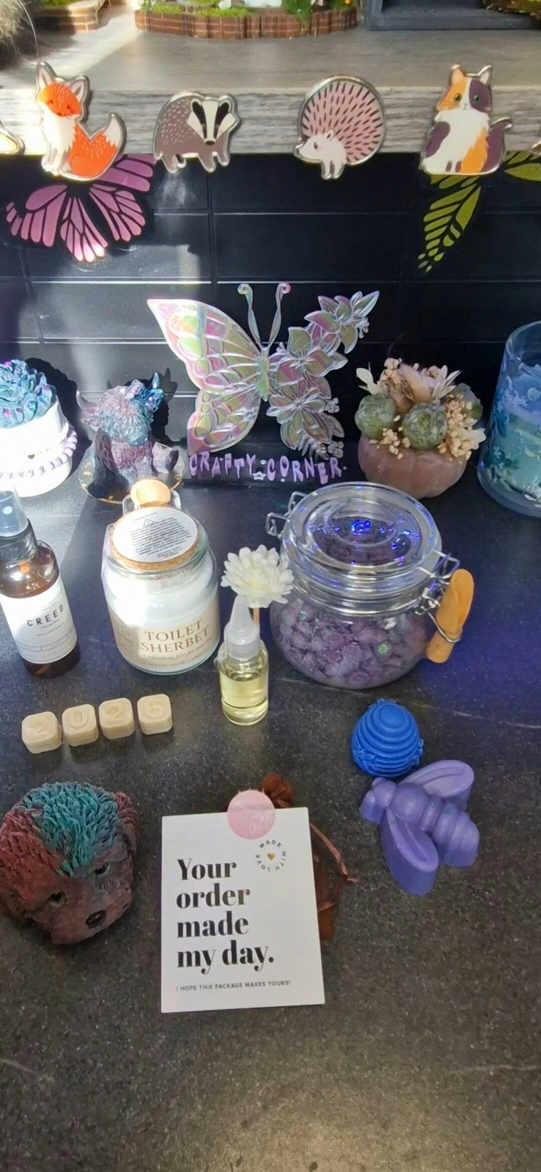 Well what can I say. A few days before the Christmas postal cut off day Lydia took on a huge order from me of 11 scoopie jars in different colours and scents. I felt bad putting her under strain. But she had no problem. She done it with time to spare and I relieved then in good time to give out for Xmas. My daughters are obsessed as well as me. Wanting more. I will admit to keeping a few myself as I just love the the colours the scent and the jars and the little spoons are so beautiful. U just can't help but want more. Lydia is amazing at what she does and everything is made to perfection. Can't wait for my next order. You won't be disappointed and they make amazing gifts.