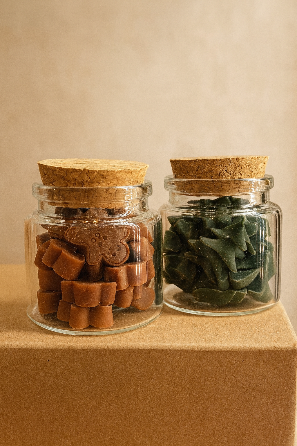 "Make your home smell like a winter wonderland with Tiny Melts! These adorable wax melts come in festive shapes of gingerbread and Christmas trees, and are packaged in mini glass pots - perfect for stocking fillers. Each pot is approximately 23g, making these the cutest and most fragrant gifts of the season. Get yours now!"