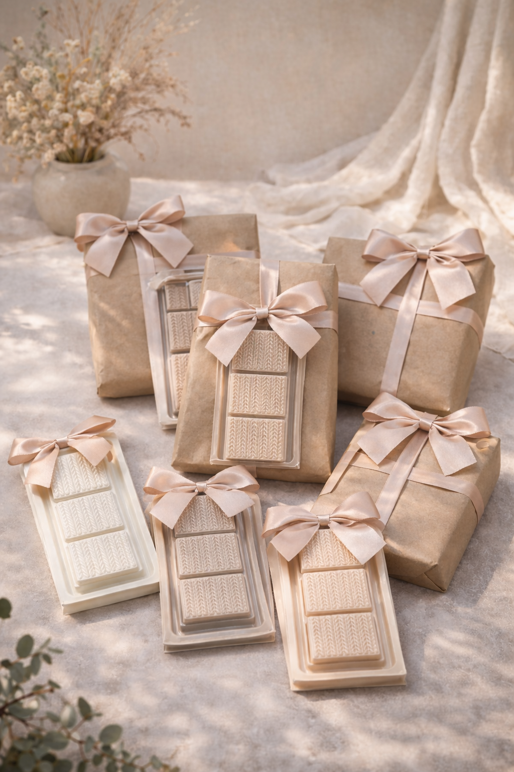 Surprise yourself or your loved ones with our Wax Melt Mystery Bundle. This bundle comes with 4 different scented wax bars that are sure to fill your home with a delightful aroma. The wax bars are in a beautiful wool design clamshell in different netural colours. The Wax Melt Mystery Bundle is perfect for those who love to experiment with different scents. Your also saving £2 with this Box!!